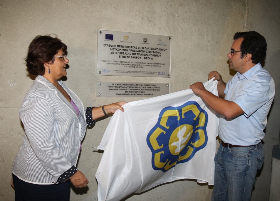 Με την ολοκλήρωση των έργων του Σταθμού Μετεπιβίβασης σε Μέσα των Δημοσίων Μεταφορών στην Πλατεία Σολωμού με την εγκατάσταση ηλεκτρονικού εξοπλισμού, την ανάπλαση του κήπου στην τάφρο και τη δημιουργία σήραγγας κάτω από την Πλατεία Σολωμού τελέστηκαν τα εγκαίνια από τη Γενική Διευθύντρια του Υπουργείου Γεωργίας, Αγροτικής Ανάπτυξης και Περιβάλλοντος Ολυμπία Στυλιανού εκ μέρους του Υπουργού Μεταφορών, Επικοινωνιών και Έργων Μάριου Δημητριάδη την Τρίτη 13 Οκτωβρίου 2015 στην τάφρο της Πλατείας Σολωμού.