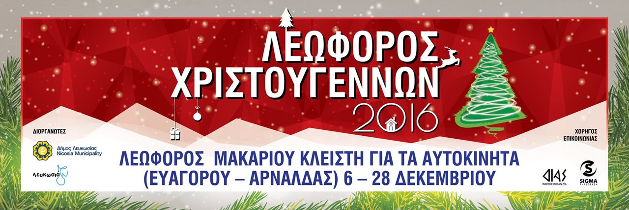 Η Λεωφόρος Χριστουγέννων ξαναζωντανεύει στη λεωφόρο Μακαρίου σε κλίμα γιορτινό και χαρούμενο για μικρούς και μεγάλους που θέλουν να απολαύσουν ένα μαγικό περιβάλλον γεμάτο χριστουγεννιάτικες μυρωδιές και ενδιαφέρουσες δραστηριότητες. Το δίκτυο εθελοντών Λευκωσιάζω, σε συνεργασία με τον Δήμο Λευκωσίας, διοργανώνουν τη λειτουργία της Λεωφόρου Χριστουγέννων από τις 11 μέχρι τις 26 Δεκεμβρίου 2016.