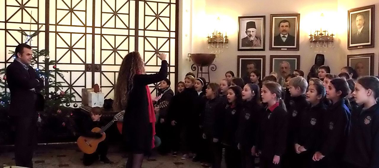 Χριστουγεννιάτικα κάλαντα έψαλλαν μαθητές της Αμερικάνικης Ακαδημίας στον Δήμαρχο Λευκωσίας Κωνσταντίνο Γιωρκάτζη και το προσωπικό του Δήμου στις 21 Δεκεμβρίου 2016.