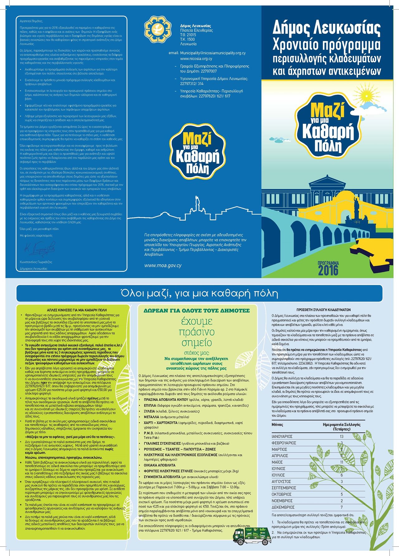 Παρακαλούμε τους δημότες όπως κρατήσουν το φυλλάδιο για όλη τη χρονιά γιατί περιέχει χρήσιμες πληροφορίες. Το φυλλάδιο βρίσκονται επίσης αναρτημένο στην ιστοσελίδα του Δήμου www.nicosia.org.cy