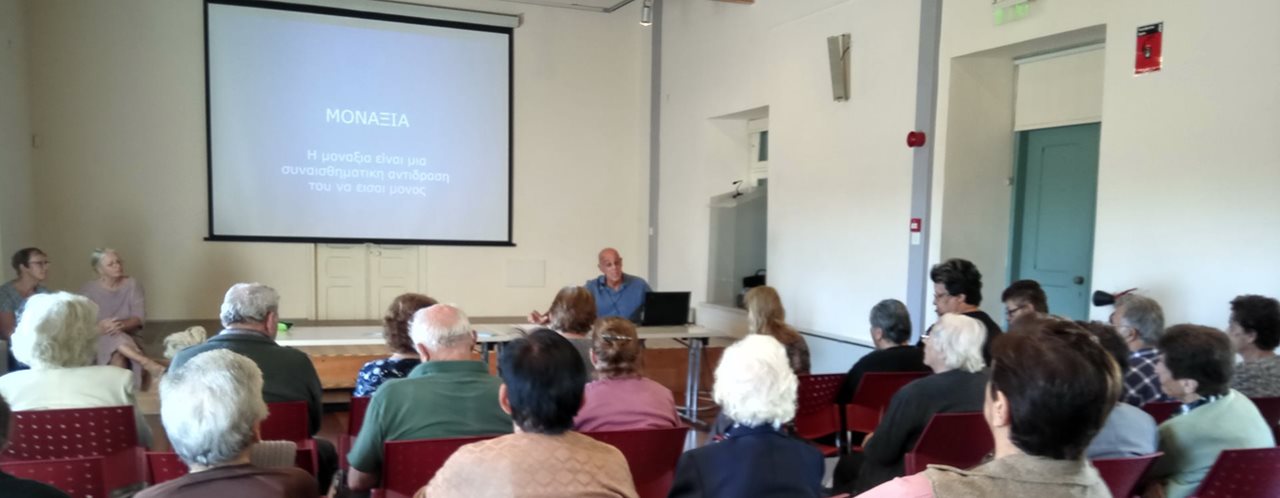 Διάλεξη με θέμα «Μοναξιά - Οι επιπτώσεις της στην ζωή των ηλικιωμένων» από το Πολυδύναμο Δημοτικό Κέ