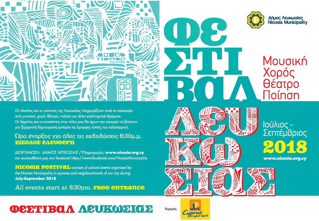 Ο Δήμος Λευκωσίας διοργανώνει για τέταρτη συνεχόμενη χρονιά το «Φεστιβάλ Λευκωσίας», με βραδιές μουσικής, χορού, θεάτρου και ποίησης, μεταξύ των μηνών Ιουλίου και Σεπτεμβρίου 2018.