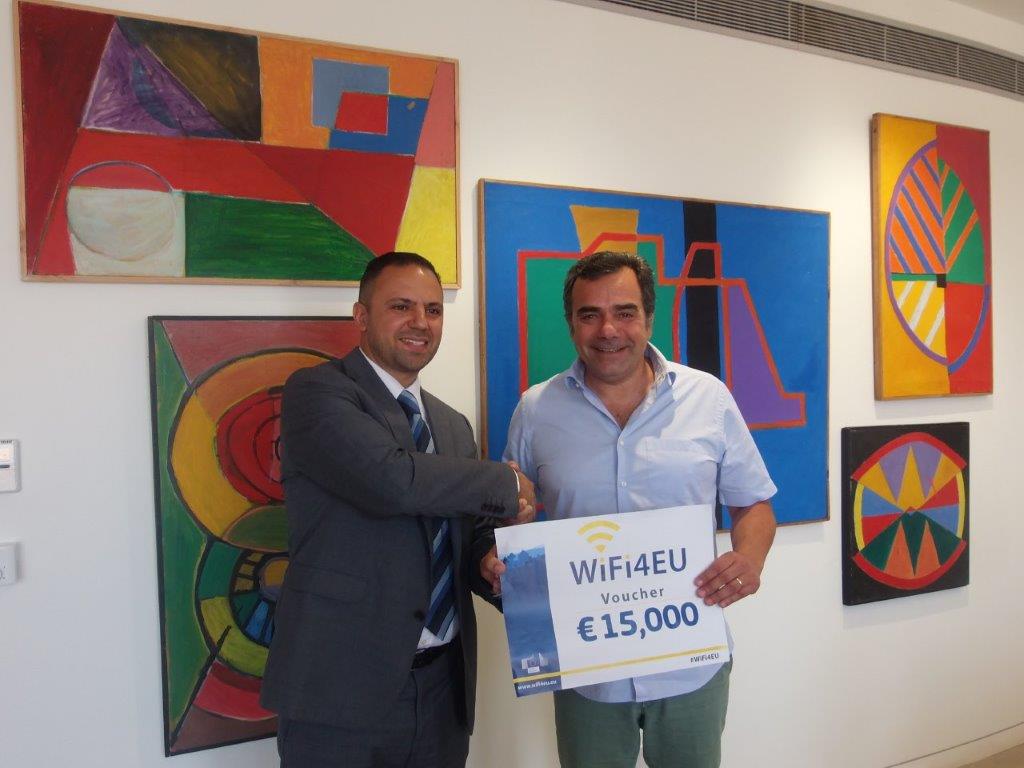 Στο πλαίσιο της συνάντησης ο κ. Tona παρέδωσε στον Δήμαρχο Λευκωσίας «κουπόνι» για την εγκατάσταση δικτυού WiFi, δράση η οποία υλοποιείται στο πλαίσιο της πρωτοβουλίας Wifi for Europe (WiFi4EU) που αφορά στη ανάπτυξη υποδομών δωρεάν ασυρματικής ευρυζωνικής σύνδεσης, σε πολυσύχναστους δημόσιους χώρους. Η αξία του κουπονιού είναι €15.000 και καλύπτει το κόστος εξοπλισμού και εγκατάστασης.