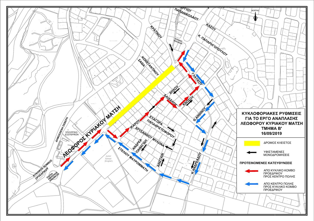 Στις 16 Σεπτεμβρίου 2019 προγραμματίζεται η έναρξη των κατασκευαστικών εργασιών στο Τμήμα Β του έργου Ανάπλασης της Λεωφόρου Κυριάκου Μάτση, το οποίο αφορά το κομμάτι από τη συμβολή της λεωφόρου με την οδό Στέλιου Μαυρομμάτη μέχρι την οδό Κρατίνου (οι δύο οδοί παραμένουν στη διάθεση του κοινού για χρήση).