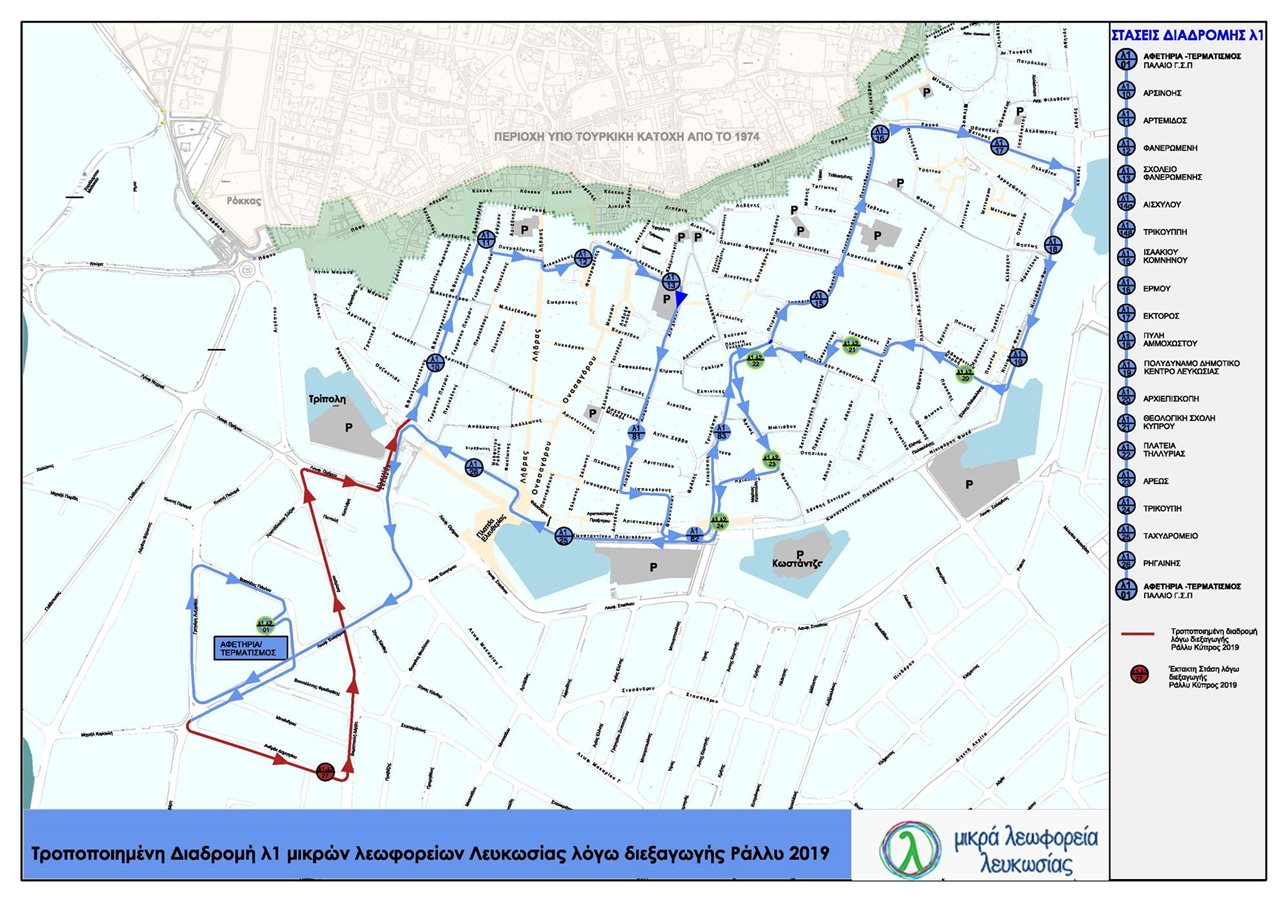 Τα μικρά λεωφορεία Λευκωσίας τροποποιούν τη διαδρομή λ1 λόγω του Διεθνούς Ράλλυ Κύπρου
