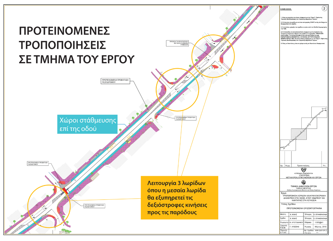 • Μείωση του αριθμού των λωρίδων κυκλοφορίας των Λεωφόρων Αγίου Ανδρέου και Καντάρας από τέσσερις σε τρείς εκ των οποίων η μεσαία λωρίδα θα εξυπηρετεί τις δεξιόστροφες κινήσεις προς παρόδιους δρόμους.