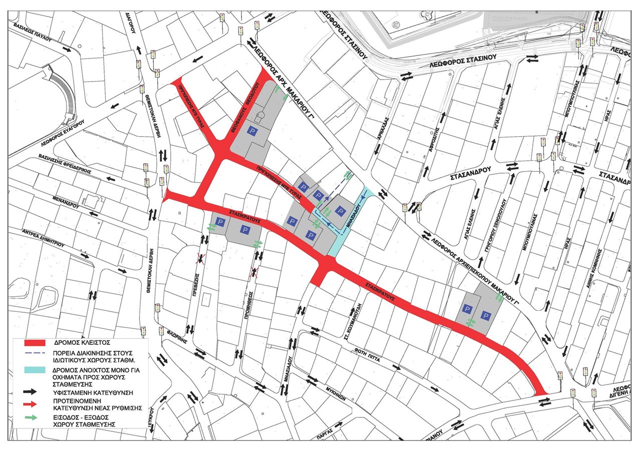 Οι οδηγοί θα μπορούν να εισέλθουν ξανά στη Λεωφόρο Μακαρίου από την οδό Πριγκιπίσσης Ντε Τυράς, μέσω του χώρου στάθμευσης του πρώην Συνεργατικού Ταμιευτηρίου Δασκάλων.