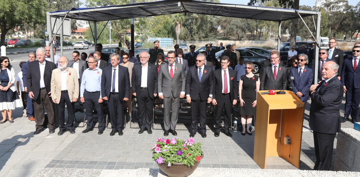 Η εκδήλωση για την Ημέρα Ανάμνησης των εθελοντών και των πεσόντων κατά τη διάρκεια των δυο Παγκοσμίων Πολέμων στον χώρο του μνημείου Κυπρίων πεσόντων κατά το Β’ Παγκόσμιο Πόλεμο, μπροστά από το οίκημα της ΠΑΣΥΔΥ πραγματοποιήθηκε στην παρουσία εκπρόσωπων του Πρόεδρου της Δημοκρατίας και του Προέδρου της Βουλής, πολλών Πρεσβευτών, Βουλευτών και εκπροσώπων των Προέδρων των κομμάτων τη Δευτέρα 11 Νοεμβρίου 2019.