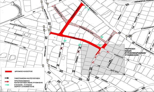 Οι τροποποιημένες κυκλοφοριακές ρυθμίσεις φαίνονται στο χάρτη.