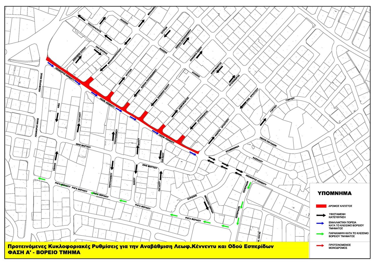 Η τροχαία κυκλοφορία θα επιτρέπεται στη μία λωρίδα με κατεύθυνση προς Λεωφόρο Λεμεσού. Η κυκλοφορία προς τη Λεωφόρο Νίκης θα εκτραπεί κυρίως διαμέσου των οδών Εσπερίδων και Ρήγα Φεραίου. Η κυκλοφορία προς τις παρόδους δεν θα διαφοροποιηθεί, ενώ κατάλληλη σήμανση θα τοποθετηθεί σε όσες οδούς θα καταστούν προσωρινά αδιέξοδοι. Θα ακολουθήσουν οι εργασίες στο νότιο πεζοδρόμιο του συγκεκριμένου τμήματος, με αντίστοιχες κυκλοφοριακές ρυθμίσεις.
