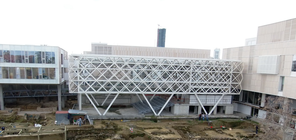 Το πρώτο μέρος της κατασκευής, που αφορούσε το μεταλλικό φέροντα οργανισμό, έγινε με προηγούμενο κατασκευαστικό συμβόλαιο.