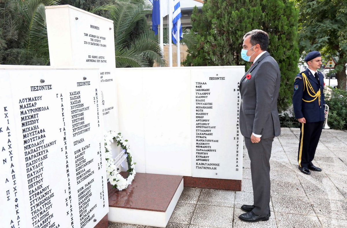 Ο Δήμαρχος Λευκωσίας Κωνσταντίνος Γιωρκάτζης κατέθεσε σήμερα 11 Νοεμβρίου 2020 στεφάνι στο Μνημείο Πεσόντων του Β΄ Παγκοσμίου Πολέμου, υπό τη συνοδεία σαλπιστή της Εθνικής Φρουράς. Στεφάνι κατέθεσε επίσης, εκ μέρους του Συνδέσμου Βετεράνων Β’ Παγκοσμίου Πολέμου, ο Καθηγητής Πέτρος Παπαπολυβίου.