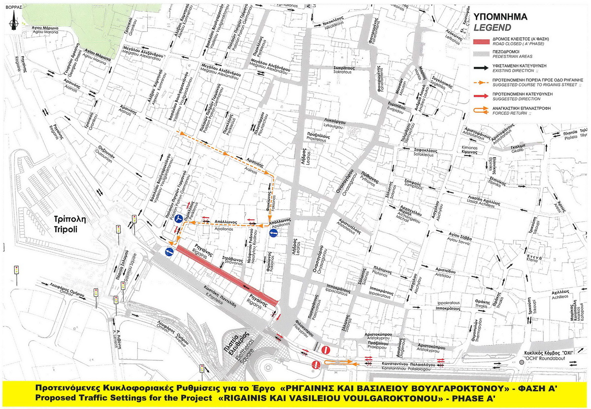 Ανακατασκευή του οδοστρώματος με μία λωρίδα κυκλοφορίας, με θέσεις στάθμευσης μόνο για οχήματα τροφοδοσίας.