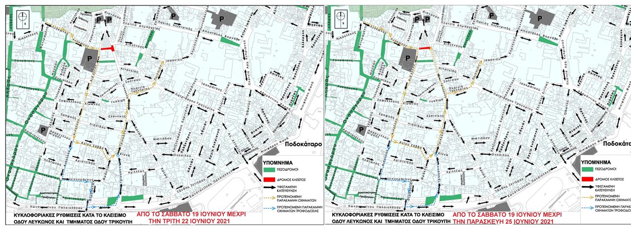 Συγκεκριμένα, τμήμα της οδού Τρικούπη με τη συμβολή της με την οδό Λεύκωνος θα παραμείνει κλειστό για τα τροχοφόρα από το Σάββατο 19 Ιουνίου η ώρα 6:00π.μ. μέχρι την Τρίτη 22 Ιουνίου η ώρα 6:00π.μ., ενώ η οδός Λεύκωνος θα παραμείνει κλειστή από το Σάββατο 19 Ιουνίου η ώρα 6:00π.μ. μέχρι την Παρασκευή 25 Ιουνίου 2021 η ώρα 6:00π.μ.