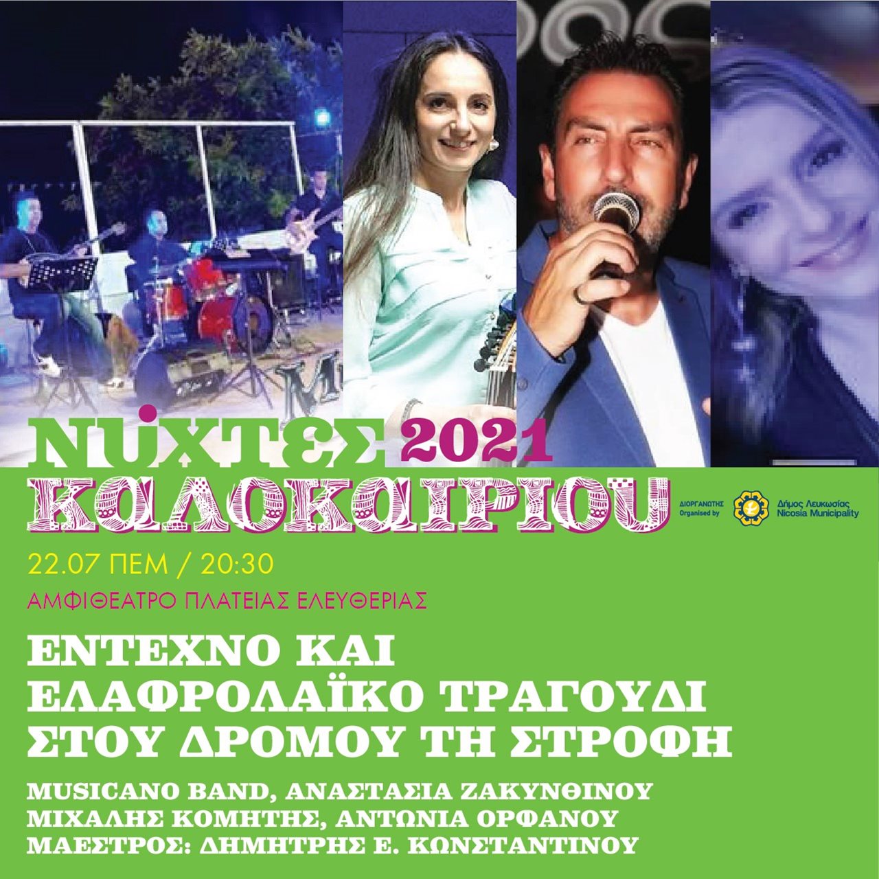 Με συναυλία από την ορχήστρα MUSICANO με τίτλο «στου δρόμου τη στροφή» η οποία θα μας ταξιδεύσει σε γνώριμους ελληνικούς μουσικούς δρόμους, μέσα από έντεχνο και ελαφρολαϊκό τραγούδι, αρχίζουν οι Νύκτες Καλοκαιριού 2021.