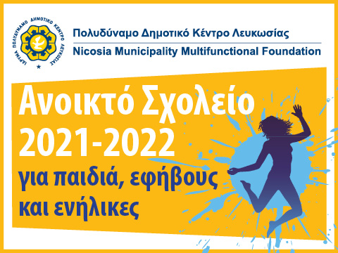 Το Πολυδύναμο Δημοτικό Κέντρο Λευκωσίας σε συνεργασία με το Υπουργείο Παιδείας, Πολιτισμού, Αθλητισμού και Νεολαίας και την Σχολική Εφορία Λευκωσίας λειτουργούν για δωδέκατη συνεχή χρονιά τον θεσμό του «Ανοικτού Σχολείου». Η λειτουργία του «Ανοικτού Σχολείου» είναι πλέον γεγονός με πλούσιο πρόγραμμα δραστηριοτήτων και περισσότερα τμήματα. Οι δραστηριότητες θα διεξαχθούν βάση των Περί Λοιμοκαθάρσης διαταγμάτων (καθορισμός μέτρων για παρεμπόδιση της εξάπλωσης του Κορωνοϊού Covid-19) και τις ισχύουσες οδηγίες των αρμόδιων Υπουργείων.