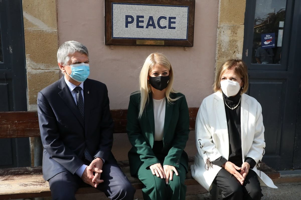 Ο Dr. Kövér και η συνοδεία του μαζί με την κα. Δημητρίου και την κα. Λουκαΐδου περπάτησαν στο τέρμα της οδού Λήδρας και στο φυλάκιο δίπλα από την πράσινη γραμμή.