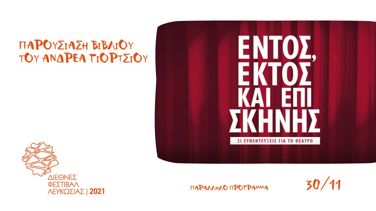 Ο δημοσιογράφος Ανδρέας Γιόρτσιος, παρουσιάζει το βιβλίο του «Εντός, εκτός και επί σκηνής. 21 συνεντεύξεις για το θέατρο» στο πλαίσιο του Παράλληλου Προγράμματος του Διεθνούς Φεστιβάλ Λευκωσίας την Τρίτη 30 Νοεμβρίου στις 18:00 στο Δημοτικό Θέατρο Λευκωσίας.