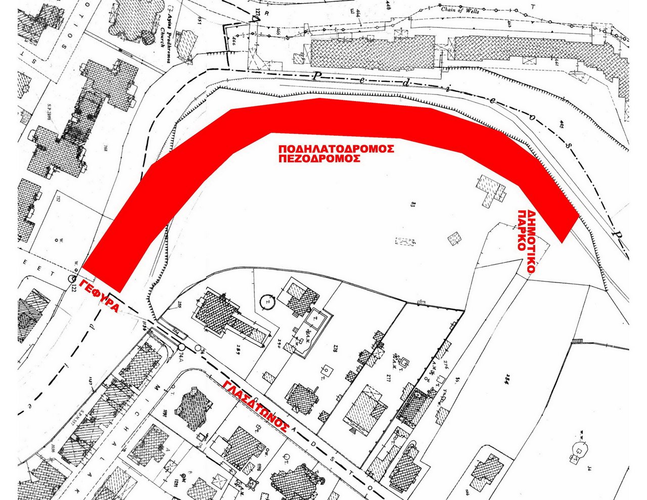 Οι πεζοί και οι ποδηλάτες θα μπορούν να κινηθούν στον πεζόδρομο από παρακείμενο σημείο του πάρκου.