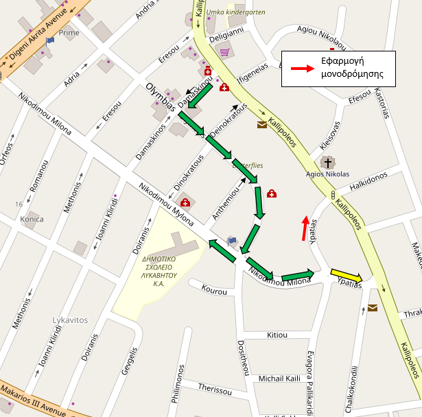 Από τις 11 Μαΐου 2022 και σε μόνιμη βάση λόγω της εφαρμογής της μονοδρόμησης, η τροχαία κίνηση από τη Λεωφόρο Καλλιπόλεως προς τις οδούς Νικ. Μυλωνά και Ευαγόρα Παλλικαρίδη θα γίνεται δια μέσου των οδών Δαμασκηνού και Ολυμπίας.
