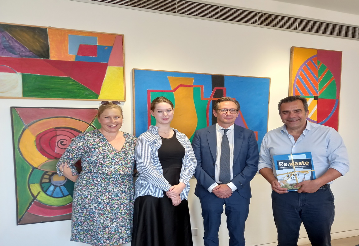 Αντιπροσωπεία της πρεσβείας της Σουηδίας επισκέφθηκε την Τετάρτη, 11 Μαΐου 2022, το Δημαρχείο Λευκωσίας, όπου φιλοξενείται η έκθεση «Re- waste», μια οικολογική πρόταση για το πώς η σκανδιναβική χώρα αντιλαμβάνεται την επόμενη μέρα στην διαχείριση αποβλήτων.