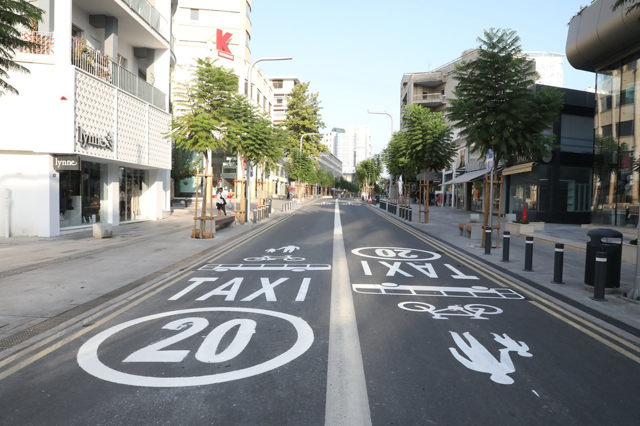 Στο συγκεκριμένο τμήμα της Λεωφόρου Μακαρίου γίνεται η πρώτη προσπάθεια στη χώρα μας για δημιουργία περιοχής μειωμένων ρύπων, εντός αστικού εμπορικού κέντρου.