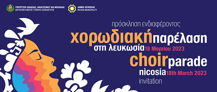 Ο Δήμος Λευκωσίας και το Υπουργείο Παιδείας, Αθλητισμού και Νεολαίας διοργανώνουν μεγάλη χορωδιακή παρέλαση το Σάββατο 18 Μαρτίου 2023. Στόχος της διοργάνωσης είναι η ανάδειξη της διαχρονικής αξίας της μουσικής και ιδιαίτερα του τραγουδιού στη ζωή του ανθρώπου, μέσα από την ευεργετική του δράση και ως μέσου συλλογικής πολιτιστικής έκφρασης.