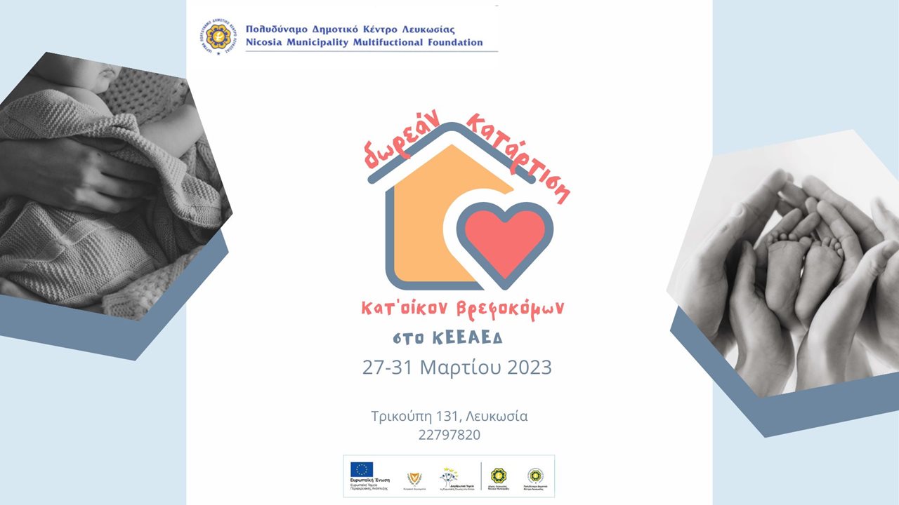 Το Πολυδύναμο Δημοτικό Κέντρο Λευκωσίας, στο πλαίσιο υλοποίησης του έργου «Κέντρο Ενημέρωσης και Επιμόρφωσης για την Απασχόληση και την Επιχειρηματική δράση σε ευάλωτες ομάδες - ΚΕΕΑΕΔ», δημιουργεί ευκαιρίες κατάρτισης για Κατ’ Οίκον Βρεφοκόμους.