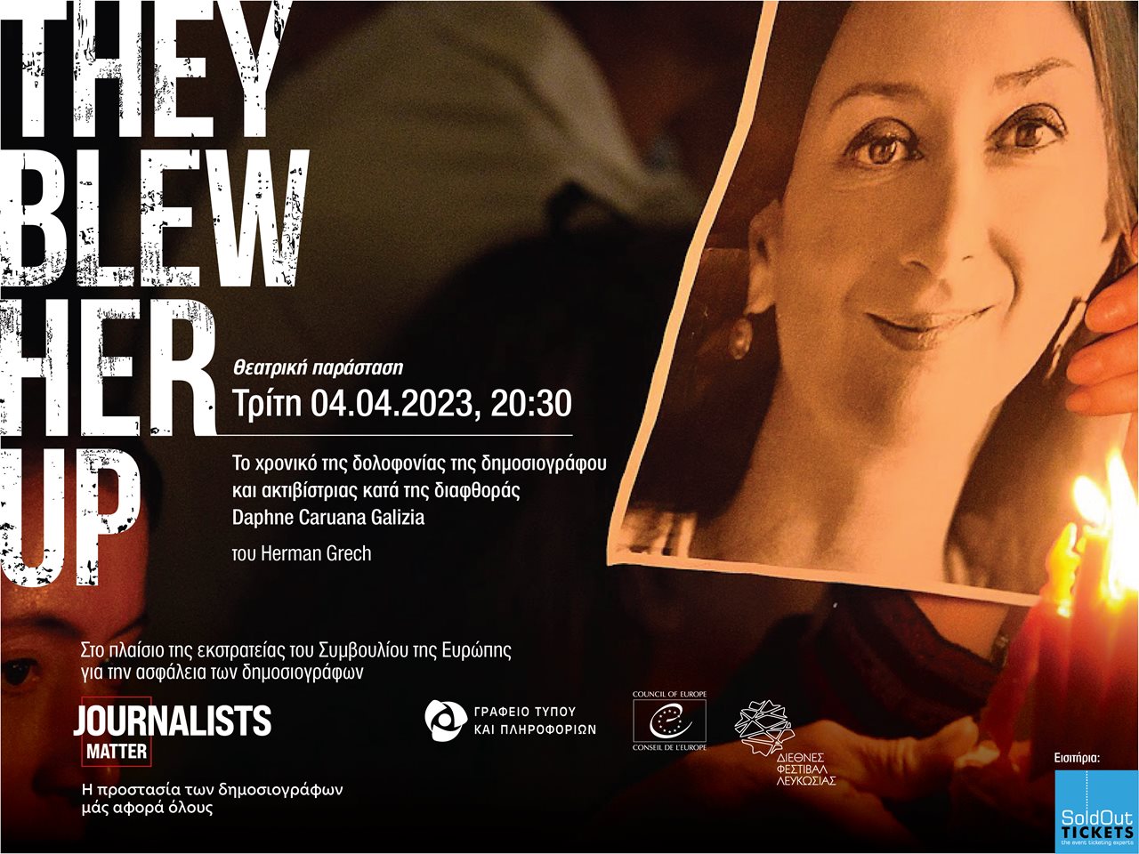 . Η παράσταση, η οποία θα είναι στα αγγλικά με ελληνικούς υπέρτιτλους, σκιαγραφεί το χρονικό της δολοφονίας της Daphne Caruana Galizia, δημοσιογράφου και ακτιβίστριας κατά της διαφθοράς, μέσα από μαρτυρίες. Η παράσταση θα λάβει χώρα στο Δημοτικό Θέατρο Λευκωσίας. Εισιτήρια θα διατίθενται από την Sold Out Tickets.