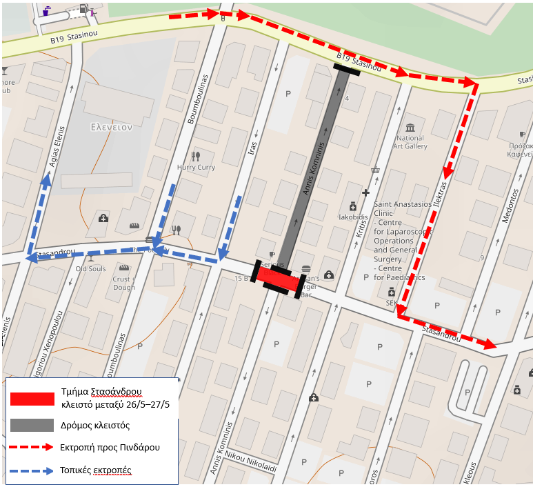 Από τις 20:00 της Παρασκευής 26 Μαΐου μέχρι και τις 20:00 του Σαββάτου 27 Μαΐου 2023 η συμβολή των οδών Στασάνδρου και Άννης Κομνηνής θα παραμείνει κλειστή για τη διέλευση οχημάτων και θα επιτρέπεται μόνο η διέλευση πεζών.