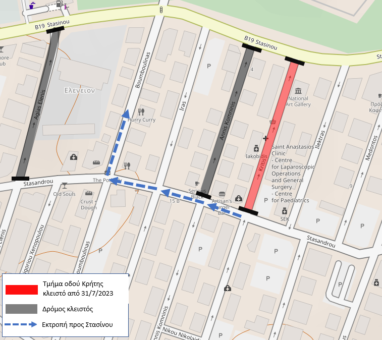 Η τροχαία κίνηση από την οδό Στασάνδρου προς τη Λεωφόρο Στασίνου θα γίνεται δια μέσου της οδού Μπουμπουλίνας, όπως υποδεικνύεται στο σχεδιάγραμμα.