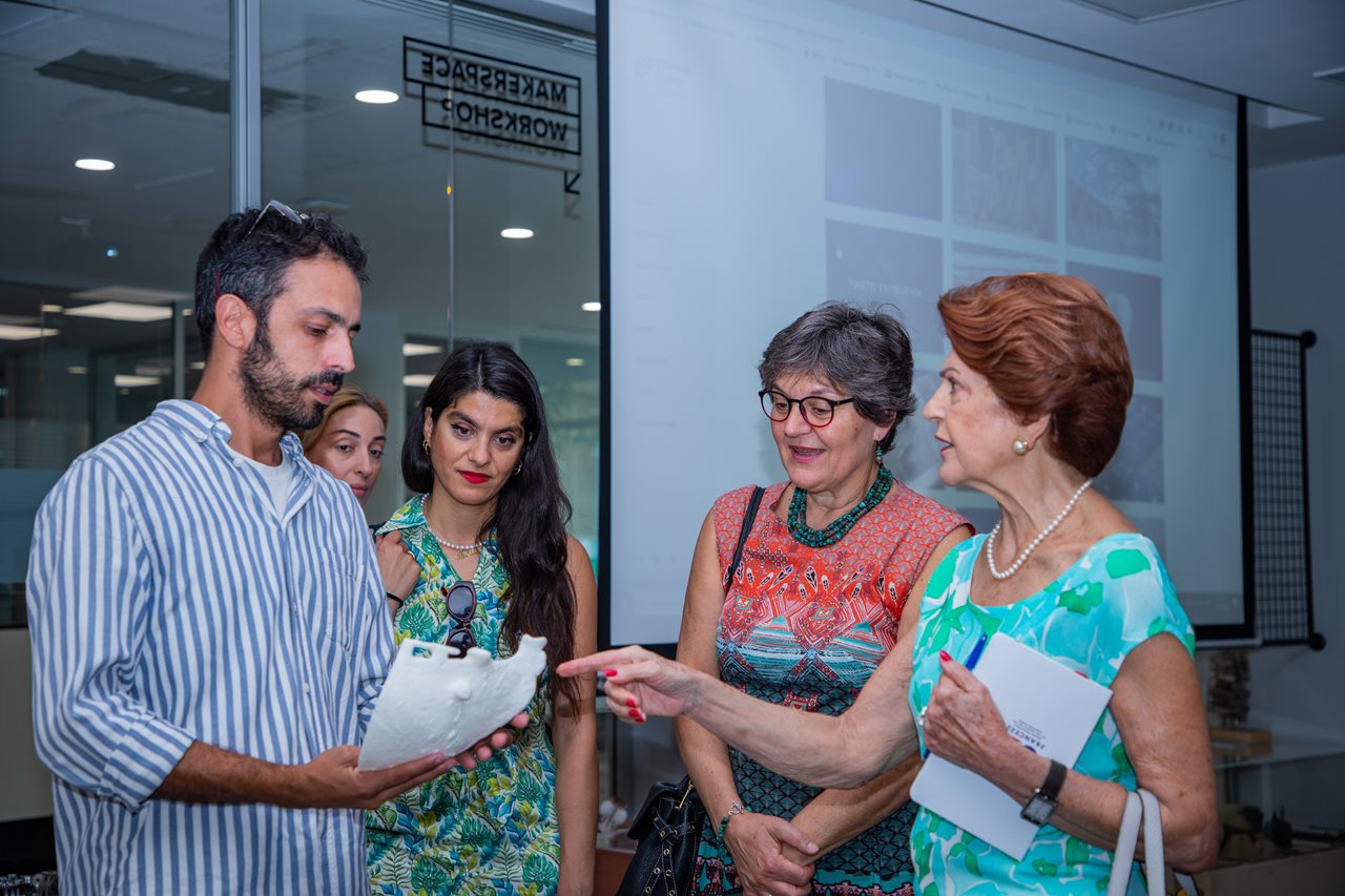Κατά την επίσκεψη, πραγματοποιήθηκε ξενάγηση στις εγκαταστάσεις του Κέντρου, με αφετηρία το Thinker Maker Space από τον senior manager κ. Μάριο Κωνσταντινίδη, καθώς και επιδείξεις διαφόρων εφαρμογών τεχνολογιών VR/AR από τον επικεφαλής επιστήμονα της ερευνητικής ομάδας V-EUPNEA, Δρ. Παναγιώτη Χαραλάμπους. Επίσης, έγινε σύντομη παρουσίαση του κέντρου ελέγχου του έργου της Έξυπνης Πόλης του Δήμου Λευκωσίας, το οποίο στεγάζεται στο ίδιο κτήριο με το CYENS, από την διευθυντήρια του έργου κα Κωνσταντίνα Λορτζιέ.