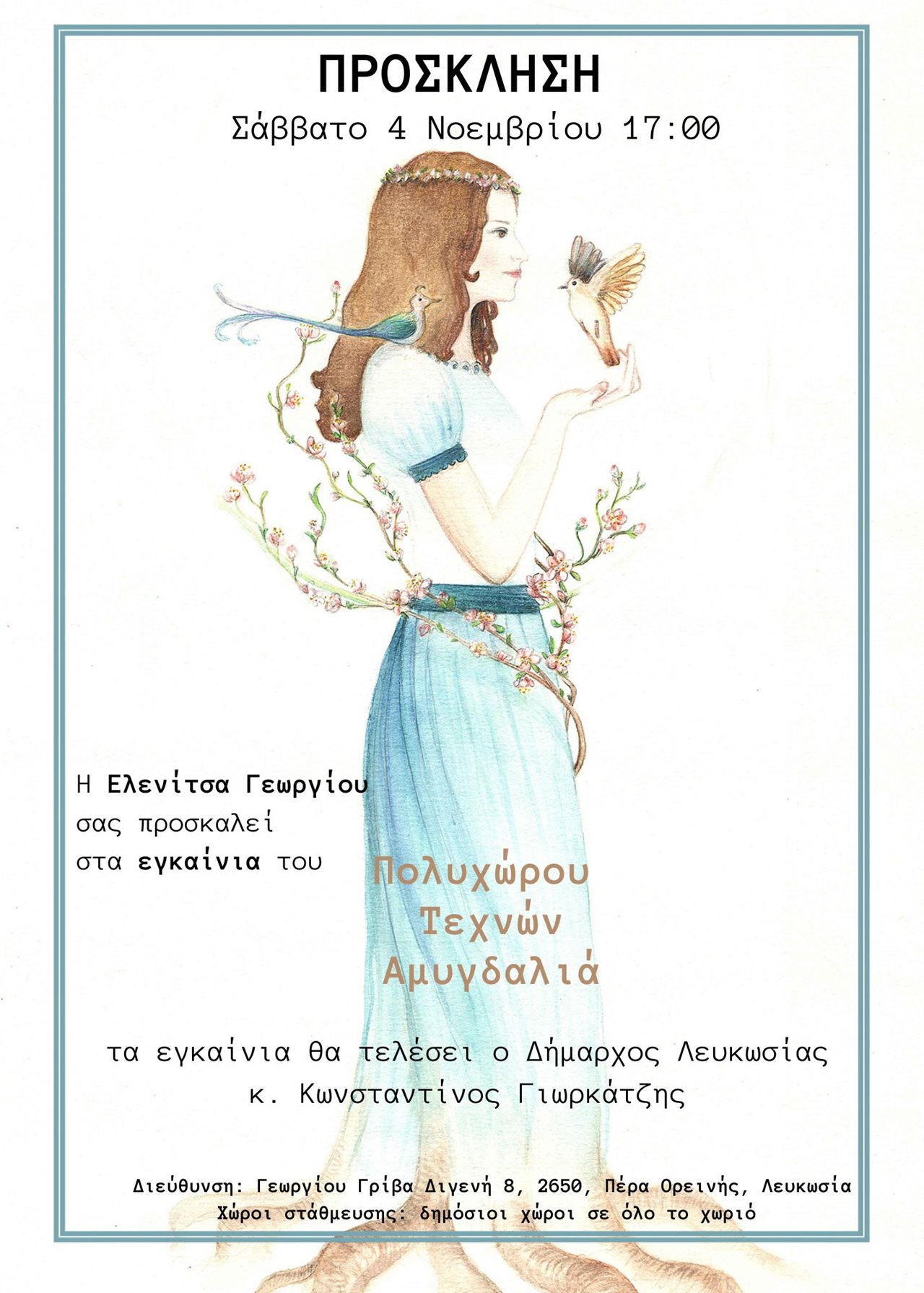 στον ολοκαίνουργιο «Πολυχώρος Τεχνών Αμυγδαλιά» στα Πέρα Ορεινής, τον οποίο θα εγκαινιάσει ο Δήμαρχος Λευκωσίας Κωνσταντίνος Γιωρκάτζης.