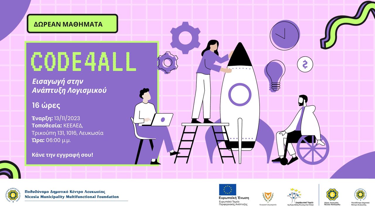 Δωρεάν μαθήματα «Code4All: Εισαγωγή στην ανάπτυξη λογισμικού» στο ΚΕΕΑΕΔ του Πολυδύναμου Κέντρου Λευ