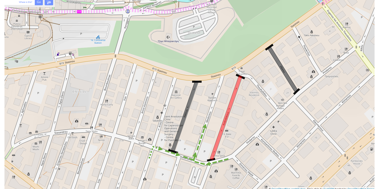Ο Δήμος Λευκωσίας πληροφορεί το κοινό ότι η οδός Ανδροκλέους από τη Δευτέρα 8 Ιανουαρίου 2024 θα παραμείνει κλειστή στην τροχαία κίνηση για περίοδο 7 εβδομάδων, λόγω εκτέλεσης εργασιών στο πλαίσιο του Έργου «Κατάλληλη κατασκευή διαφόρων οδών στη Λευκωσία – Συμβόλαιο 21 – Τρυπιώτης».