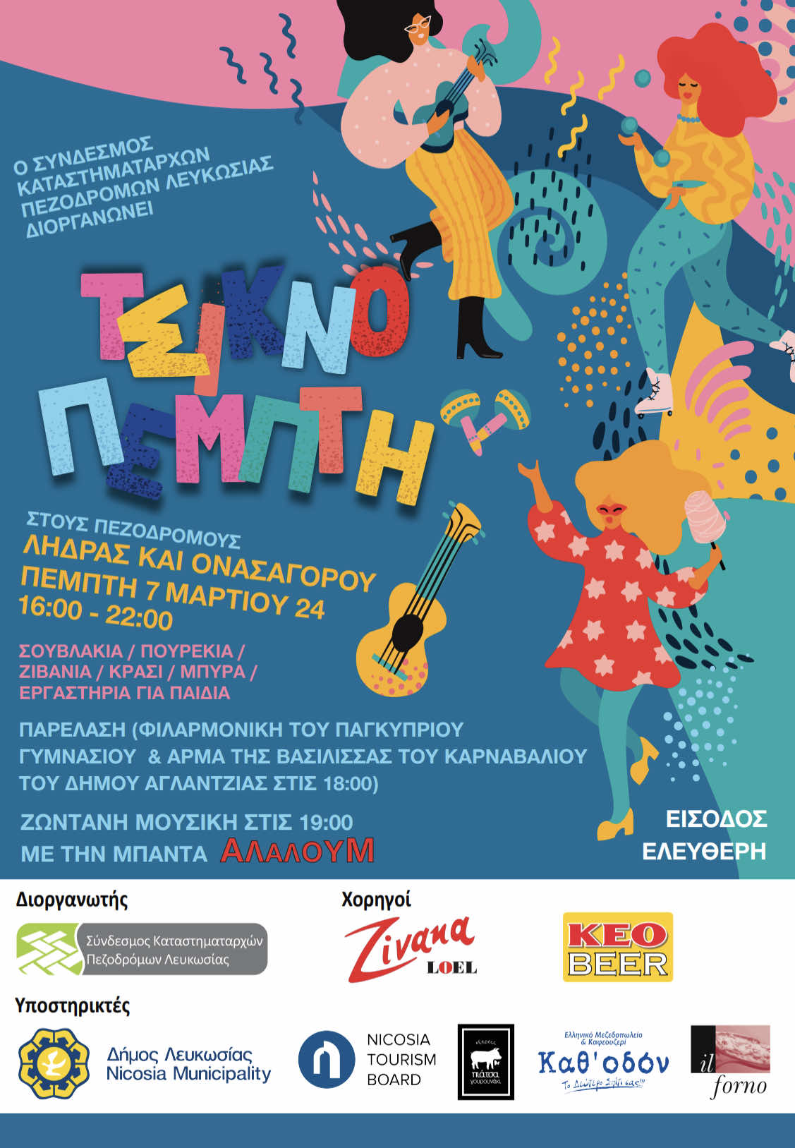 Ο Σύνδεσμος Καταστηματαρχών Πεζοδρόμων Λευκωσίας διοργανώνει με τη στήριξη του Δήμου Λευκωσίας Τσικνοπέμπτη στους Πεζόδρομους Λήδρας και Ονασαγόρου.