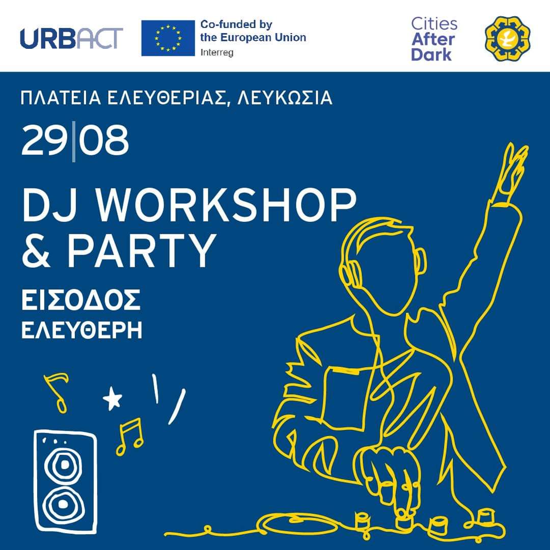 O Δήμος Λευκωσίας διοργανώνει πειραματική εκδήλωση DJ Workshop and Party, στο κάτω διάζωμα της Πλατείας Ελευθερίας την Πέμπτη 29 Αυγούστου 2024, από τις 17:00 το απόγευμα μέχρι τα μεσάνυχτα!
