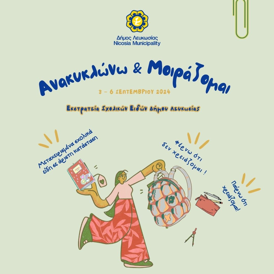 Ο Δήμος Λευκωσίας καλεί τους δημότες να συμμετάσχουν στην εκστρατεία συλλογής μεταχειρισμένων σχολικών ειδών από την Τρίτη 3 μέχρι την Παρασκευή 6 Σεπτεμβρίου 2024.