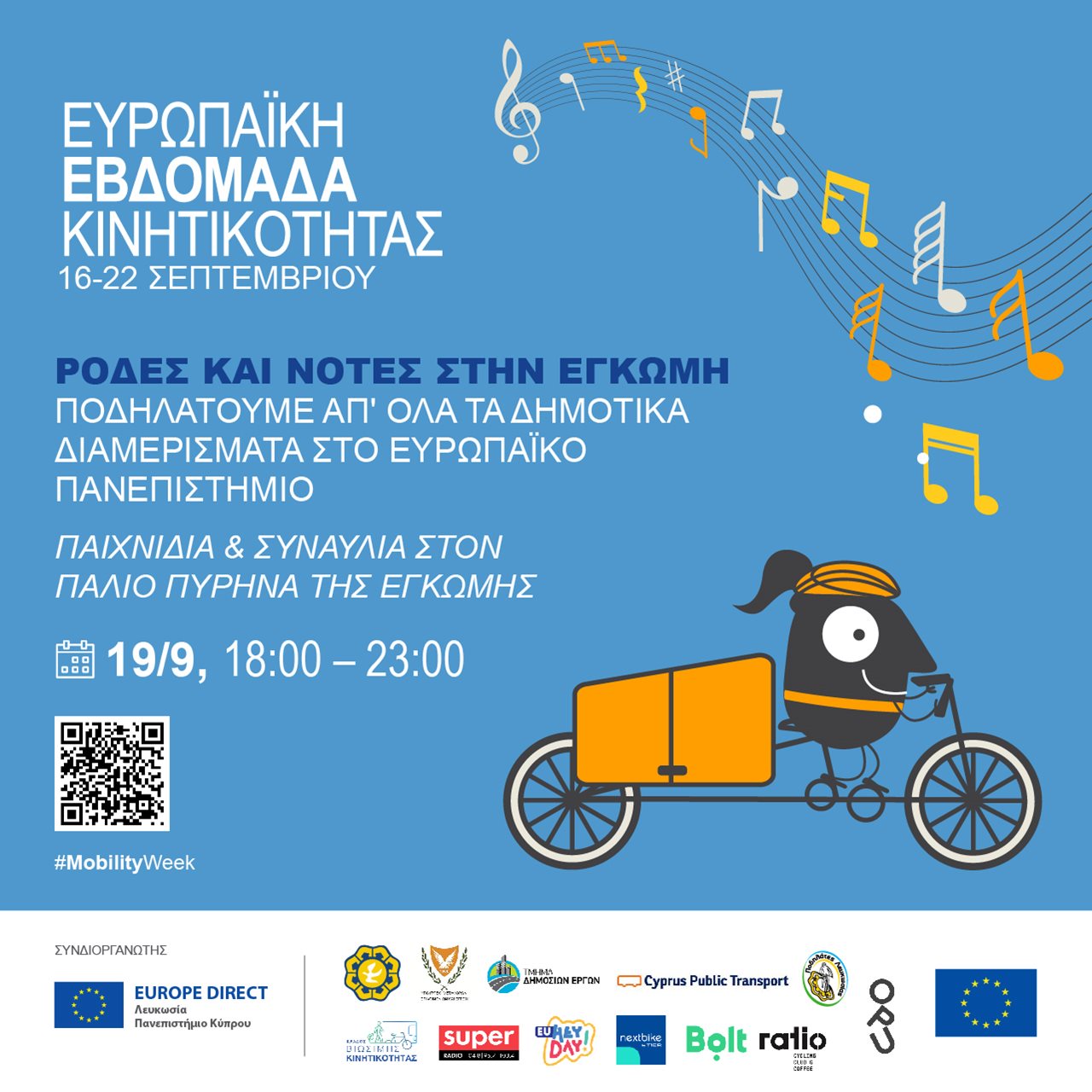 Η εταιρεία NEXT BIKE, για τους σκοπούς της εκδήλωσης και για όσους τα χρειάζονται, θα διαθέτει τα ποδήλατα της ενοικίασης της δωρεάν από τις 18:30 έως τις 20:45.
