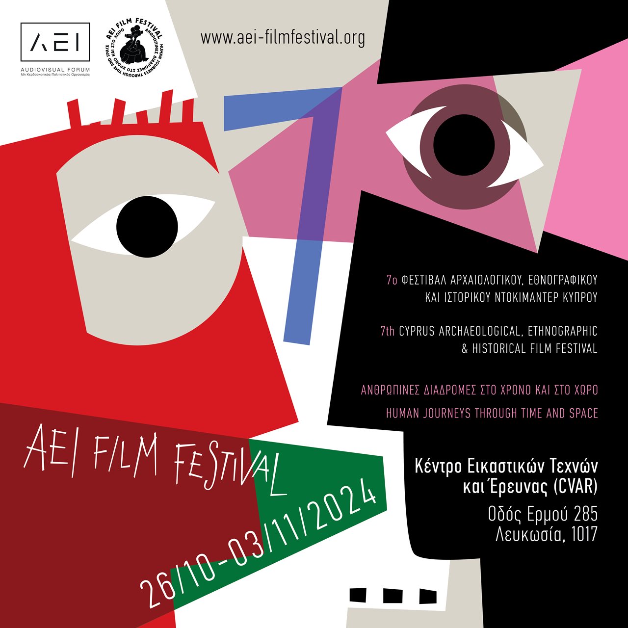 Το Φεστιβάλ Αρχαιολογικού, Εθνογραφικού και Ιστορικού Ντοκιμαντέρ (ΑΕΙ Film Festival) θα πραγματοποιηθεί στο Κέντρο Εικαστικών Τεχνών και Έρευνας (CVAR), που βρίσκεται στην οδό Ερμού, στην εντός των τειχών πόλη της Λευκωσίας. Η διοργάνωση, για άλλη μια φορά, αναμένεται ότι θα ελκύσει εκατοντάδες φίλους του ντοκιμαντέρ και επιπλέον καλλιτέχνες, δημιουργούς και μέλη της κριτικής επιτροπής από την Κύπρο και άλλες χώρες. Είναι δεδομένο ότι τις εννέα ημέρες του AEI Film Festival, η παλιά πόλη της Λευκωσίας θα είναι το επίκεντρο προσέλευσης δεκάδων ανθρώπων των γραμμάτων και των τεχνών.