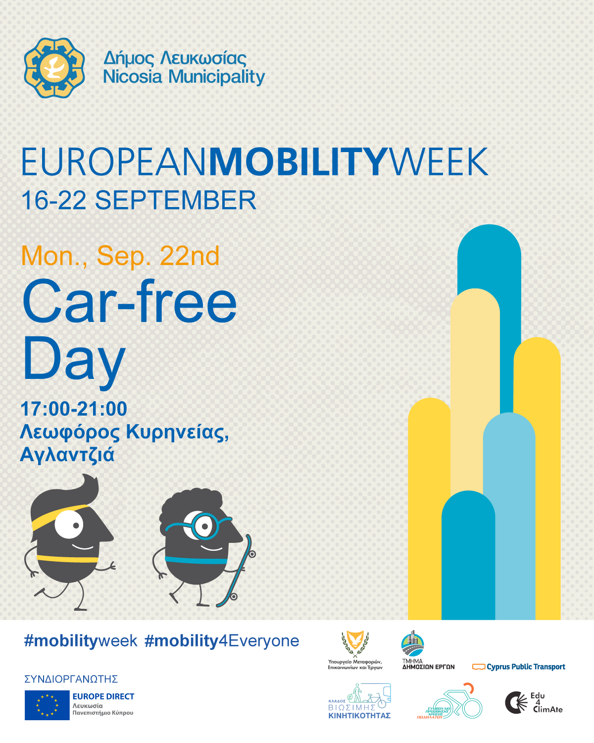 Με δράσεις σε Λευκωσία, Αγλαντζιά, Έγκωμη και Άγιο Δομέτιο, όλοι - μικροί και μεγάλοι - θα ανακαλύψουμε πώς μπορούμε να κινούμαστε πιο έξυπνα, πιο άνετα και πιο βιώσιμα.