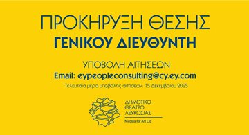 , διαχειρίστρια Εταιρεία του Δημοτικού Θεάτρου Λευκωσίας, δέχεται αιτήσεις για την πλήρωση της θέσης Γενικού/Γενικής Διευθυντή/Διευθύντριας με σύμβαση ιδιωτικού δικαίου καθορισμένης διάρκειας και αποκλειστικής εργοδότησης.