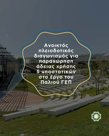 Ανοικτός Πλειοδοτικός διαγωνισμός με αρ. 256/2025 για την παραχώρηση άδειας χρήσης πέντε υποστατικών στο έργο του Παλιού ΓΣΠ σε ένα ενιαίο φορέα/πάροχο για τη λειτουργία και διαχείριση τους.