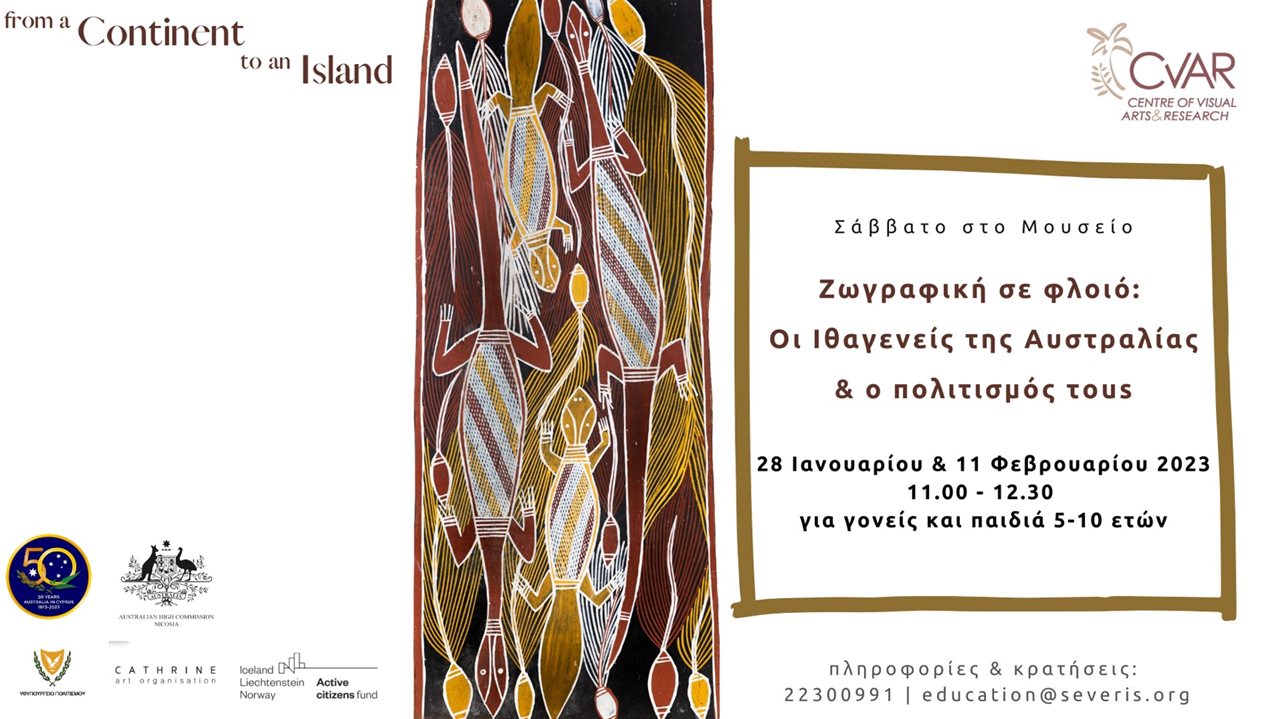 Σε αυτό το εκπαιδευτικό πρόγραμμα θα έρθεις σε επαφή με τα αντικείμενα της περιοδικής έκθεσης "From a Continent to an Island", θα ακούσεις ενδιαφέρουσες ιστορίες και μέσα από ποικίλες δραστηριότητες θα αποκωδικοποιήσεις -όσο σου επιτρέπεται- την τέχνη των Ιθαγενών της Αυστραλίας!