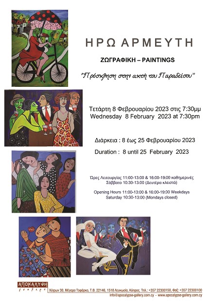 Η Ηρώ παρουσιάζει για πρώτη φορά ολοκληρωμένη δουλειά στην Λευκωσία. Η έκθεση της περιλαμβάνει πάνω από τριάντα έργα ακρυλικά σε καμβά σε διάφορα μεγέθη.