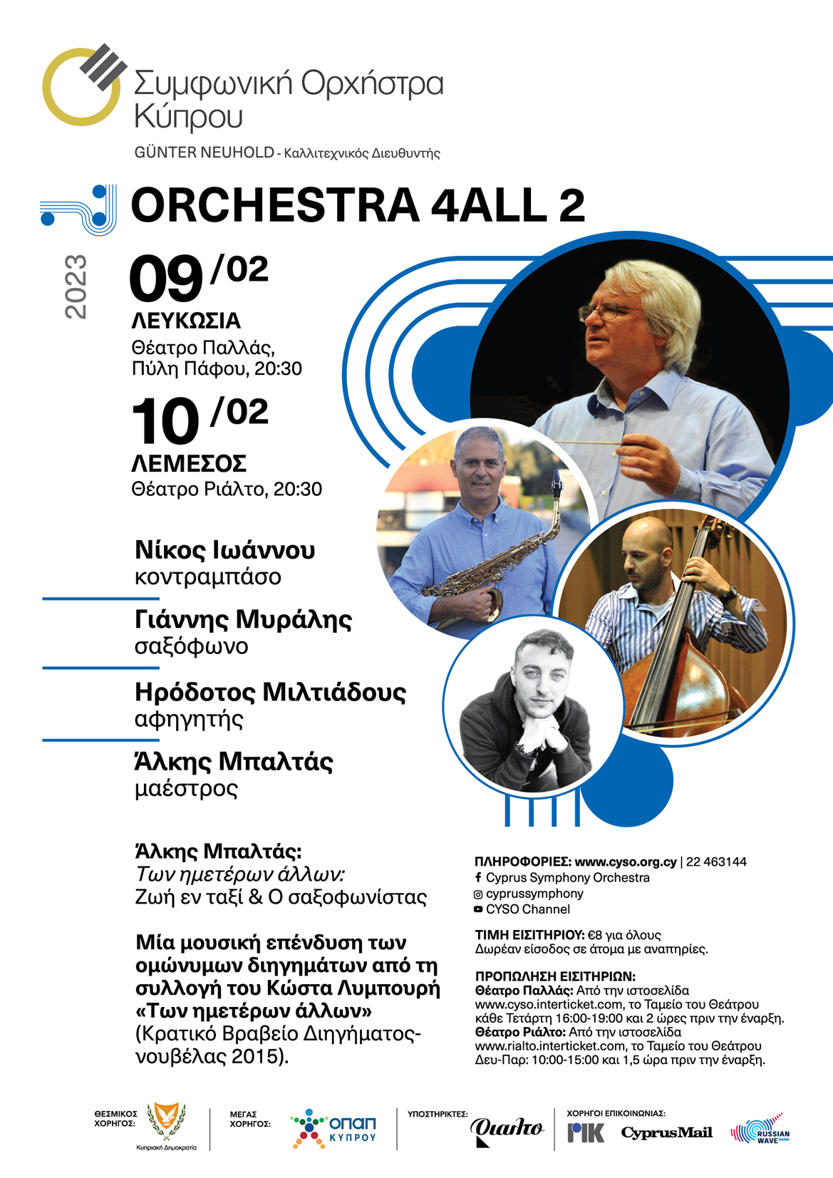 www.cyso.org.cy, το Ταμείο του Θεάτρου κάθε Τετάρτη 16:00-19:00 και 2 ώρες πριν την έναρξη.