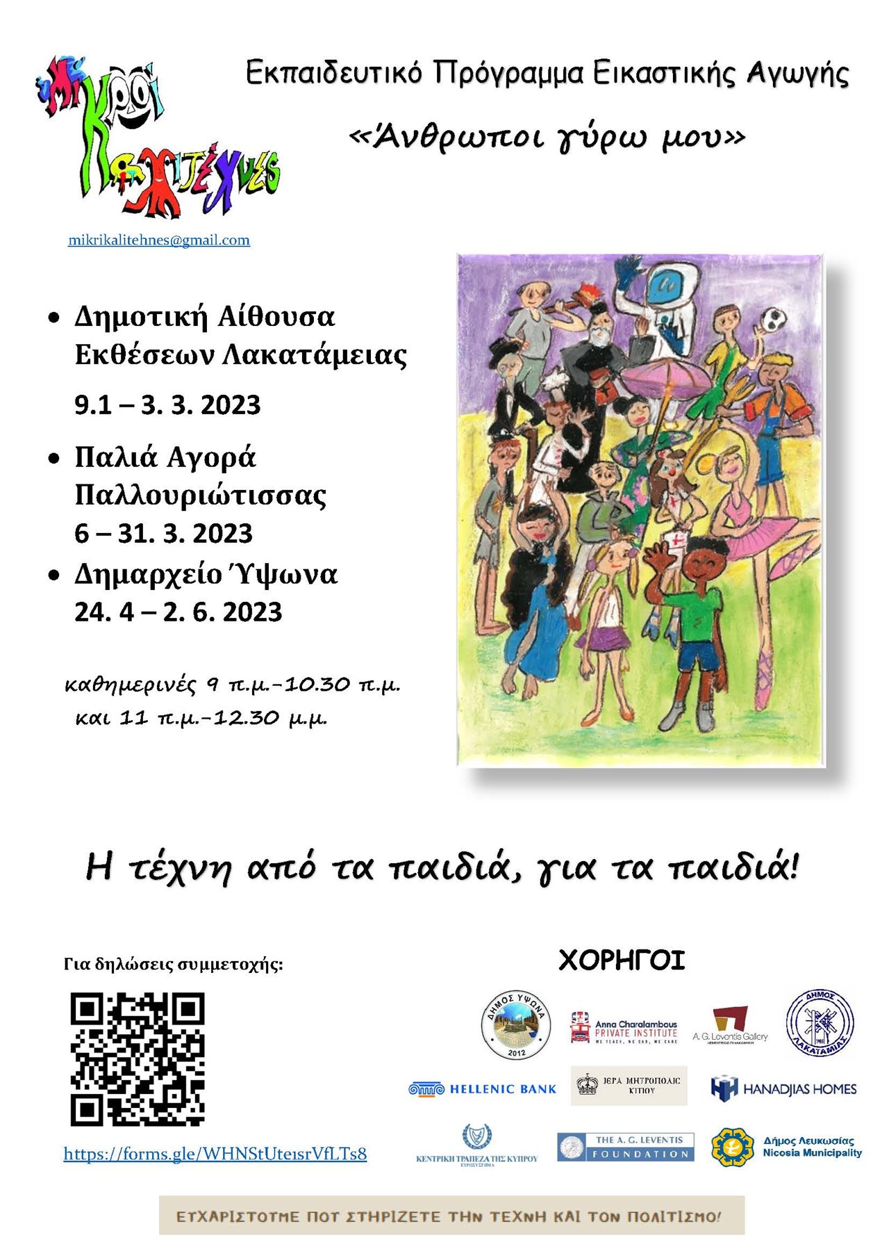 https://forms.gle/WHNStUte1srVfLTs8 ή σκανάρετε το QR code πιο κάτω, για να υποβάλετε τη δήλωση συμμετοχής για το εκπαιδευτικό πρόγραμμα. Θα επικοινωνήσουμε μαζί σας τηλεφωνικώς για επιβεβαίωση του ραντεβού σας.