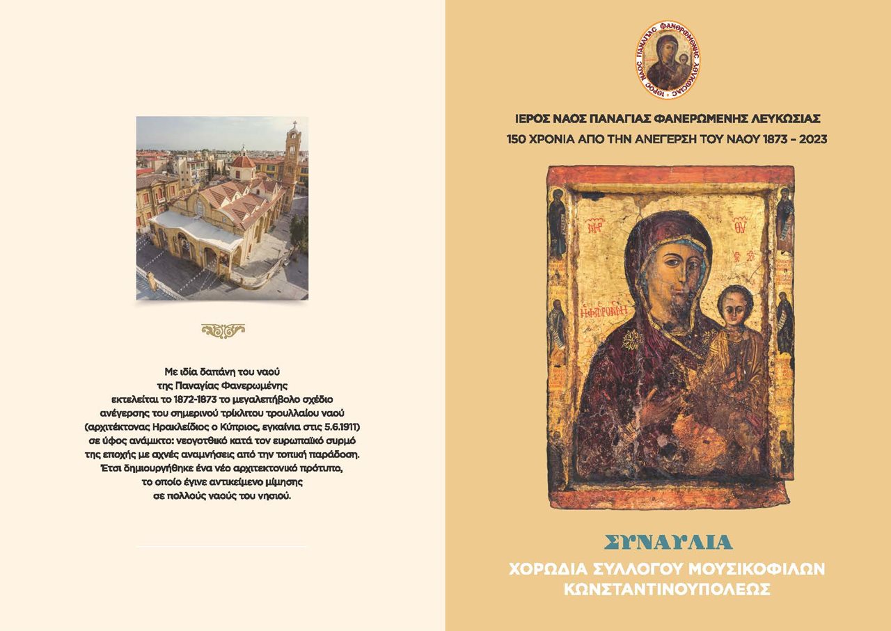 H Εκκλησιαστική Επιτροπή και οι Ιερείς του Ιερού Ναού Παναγίας Φανερωμένης Λευκωσίας διοργανώνουν Πολιτιστική Εκκλησιαστική Συναυλία με την ευκαιρία των εορτασμών για τα 150 χρόνια από την ανέγερση του Ναού.