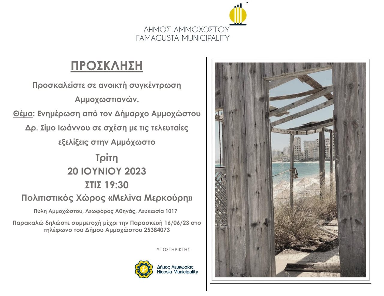 Παρακαλώ δηλώστε συμμετοχή μέχρι την Παρασκευή 16/06/23 στο τηλέφωνο του Δήμου Αμμοχώστου 25384073