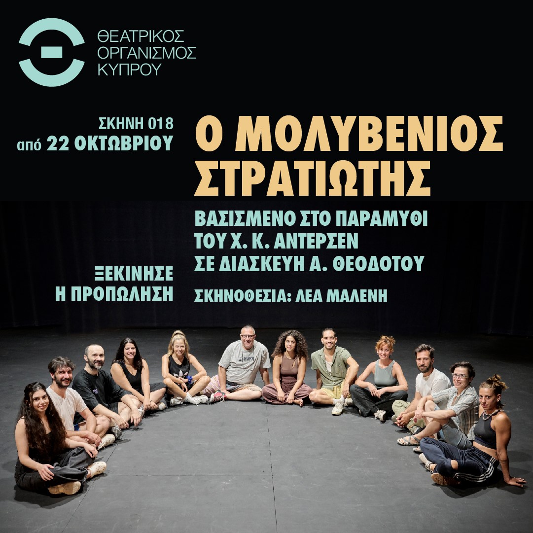 Ο μολυβένιος στρατιώτης συστήνεται σε μικρούς και μεγάλους θεατές μέσα από τη θεατρική εκδοχή της Άνδρης Θεοδότου στη Σκηνή 018 του Θεατρικού Οργανισμού Κύπρου από τις 22 Οκτωβρίου 2023. Τη σκηνοθεσία του έργου έχει αναλάβει η Λέα Μαλένη, η οποία, μαζί με έναν θίασο ταλαντούχων ηθοποιών, φιλοδοξεί να μας παρασύρει, με γρήγορες εναλλαγές δράσης, ζωηρή κίνηση, φαντασία και άφθονη μουσική, στο επίμονο ταξίδι του μολυβένιου ήρωα προς την αγάπη και την ευτυχία.
